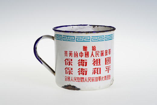 20世纪50年代全国人民慰问解放军代表团赠送给人民解放军战士马明喜的搪瓷杯