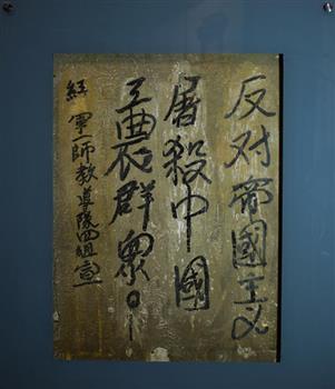 1931年中国工农红军独立一师教导团在炎陵县土墙上书写的“反对帝国主义屠杀中国工农群众”的标语