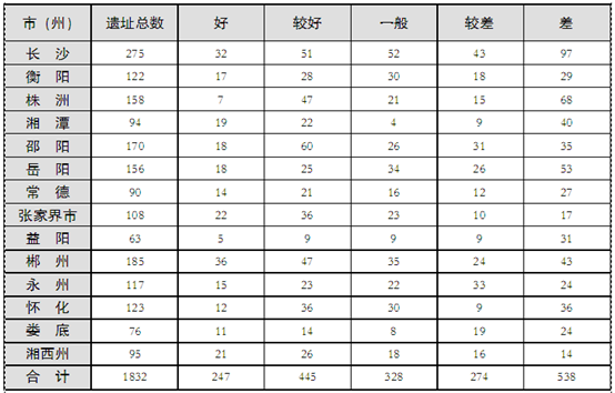 湖南省革命遗址保护状况一览表