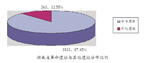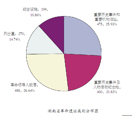 以上数据表明,全省各种类别的革命遗址都占有一定的数量,其中前三类所占的比重较大,尤其是革命领导人故居更是高居榜首,这反映了新民主主义革命时期湖南英才辈出的历史特点。