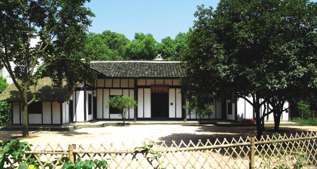 旧址坐西朝东,呈凹字形对称布局,分为堂屋、左右厢房、厨房、碓屋等。属于清代穿斗式民居建筑,面积约175平方米,三开间单层悬山顶竹木结构,盖小青瓦,竹织壁结构墙体。堂屋前有庭院,外有竹篱环绕,入院槽门悬挂有“沩痴寄庐”匾额。