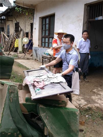 受灾后,歪把子组的清理工作十分繁重,党史干部职工手持铁铲、扫帚,集体投入到清障清淤和消毒清洁工作当中。他们不怕脏累,协同合作,物品清运、铲泥装车、洒水消毒一气呵成,短短2个小时就清理干净3间房屋。省委党史研究室干部邹标昌说:“满身泥污不要紧,只要心头有百姓。想到老百姓灾后能早日重归家园,我们心里就十分高兴。”