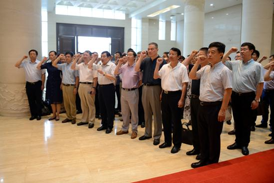“入党誓词共有80个字,11个逗号,1个句号,注意奋斗终身的‘身’字,大家要牢记……”在党史馆大厅,高文兵率领党委中心组全体成员重温了入党誓词,并为大家对入党誓词入脑入心作了特别强调。随后,高文兵一行仔细听取讲解,认真参观了党史陈列馆的基本陈列,深入了解了中共湖南地方组织的发展历程和湖南党史、军史以及党史人物的光辉业绩。在滚动着湘籍先烈名字的电子显示屏前,高文兵点击屏幕,为先烈献上了电子鲜花。