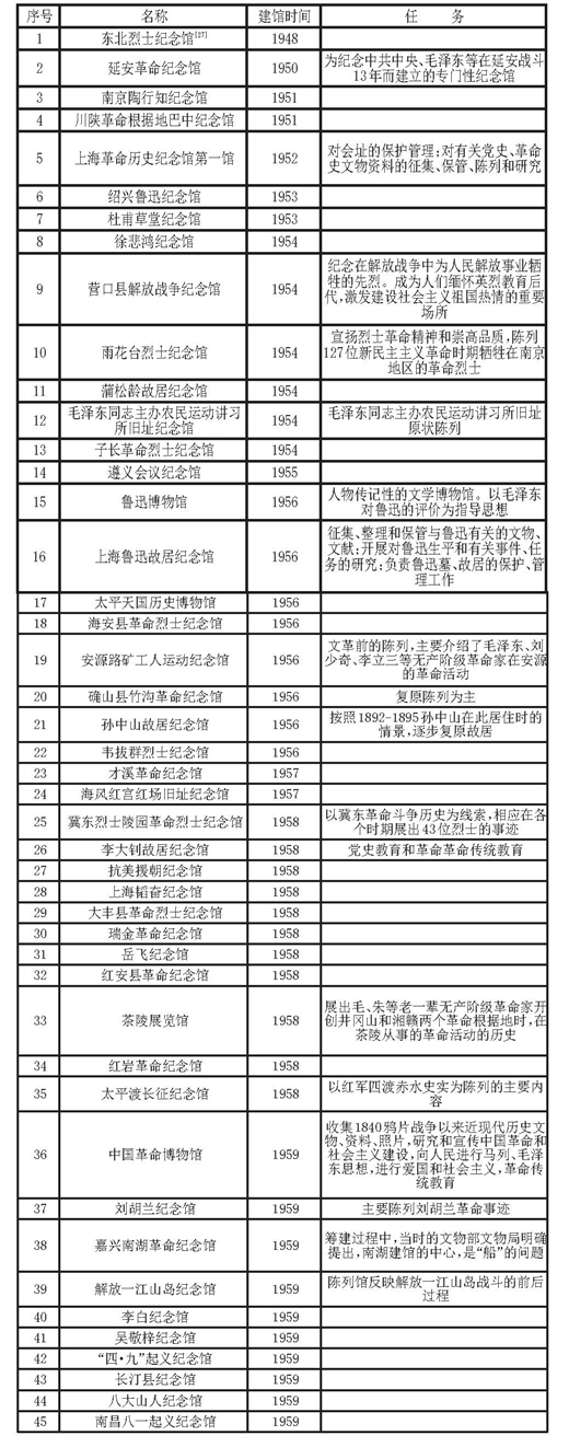 1 9 4 9-1 966年我国纪念馆建设名录[26]