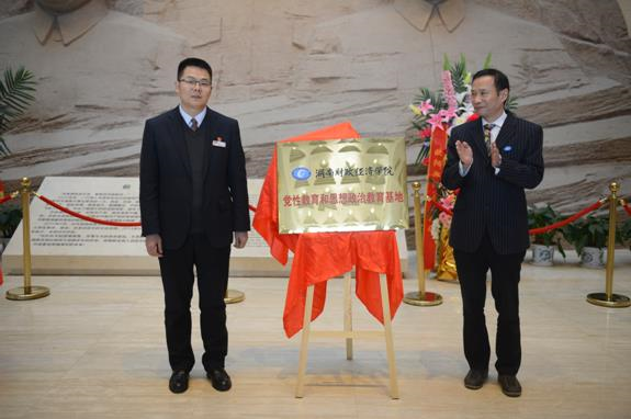为进一步加强高校党建和大学生思想政治教育工作,12月21日,湖南财政经济学院“党性教育和思想政治教育基地”、“大学生思政课实践教学基地”挂牌仪式在湖南党史陈列馆序厅举行。湖南财政经济学院党委书记肖湘愚,省委党史研究室副主任谢承新,湖南财政经济学院党委副书记晏金平,湖南财政经济学院党委委员、纪委书记李雪山等参加挂牌仪式。