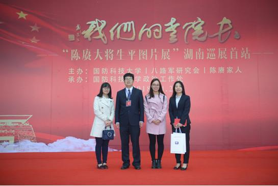 4月26日,陈赓大将生平图片展湖南巡展启动仪式在国防科技大学校史馆举行。湖南党史陈列馆馆长朱习文一行6人受邀出席仪式并参观学习。