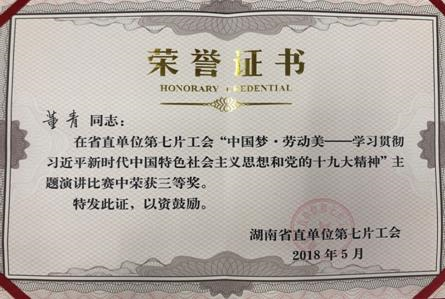 湖南党史陈列馆参赛选手董青作了题为《追梦路上,我们永不停歇》的演讲,她饱含深情,展示党史人的风采,经过激烈角逐,获得比赛三等奖。在活动中,党史馆工会主席成霞艳带领陈立香等4位工会委员现场观摩,加油助威,进行协助服务,荣获优秀组织奖。