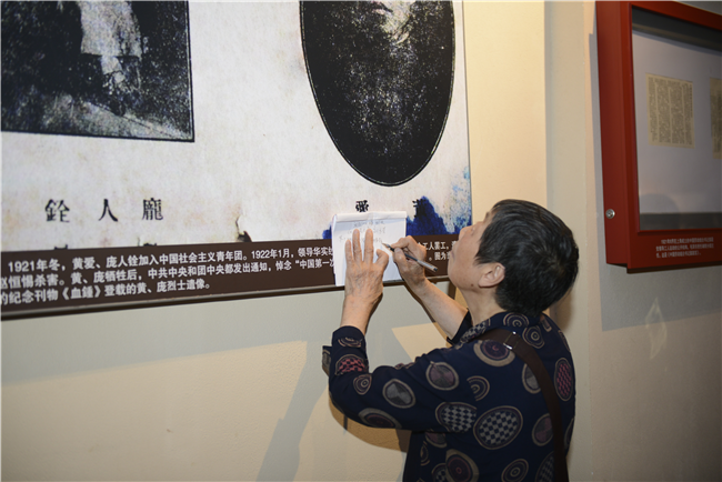 展厅里,一位穿着朴素的老奶奶,她戴着眼镜仔细的看每一张图片和实物,手上拿着本子和笔,不时地在本子上做记录。她说,自己一大早就来了,准备在这里慢慢看,这个展值得一字一句的看。