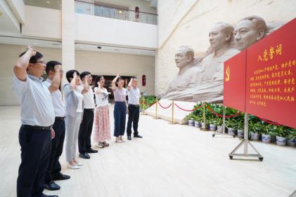 在党史馆序厅,谭慧慧一行重温了入党誓词。随后,他们在讲解员的带领下,参观了“敢教日月换新天——中国共产党湖南历史陈列”。