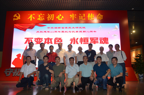 文章来源:湖南省委党史研究院机关工会 作者: 时间:2020-08-10 09:52:01湘江水暖,长沙律动。为庆祝中国人民解放军建军93周年及纪念抗美援朝70周年,2020年8月4日,省委党史研究院机关工会组织全院退役军人,以“不变本色 永恒军魂”为主题,赴湖南党史陈列馆开展军事日活动,观看“张文抗美援朝战地摄影展”及“不忘初心、牢记使命”党史文献展。由副院长王小平带队,院机关和党史陈列馆共20余名在职及退休转业军人参加了该主题活动。