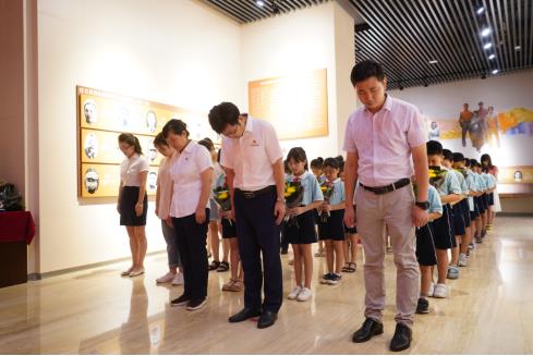 为缅怀抗战先烈,大家集体默哀一分钟,以表达对抗战英雄的哀思。然后,大家整齐列队,手捧鲜花,在英烈雕塑前鞠躬致敬。