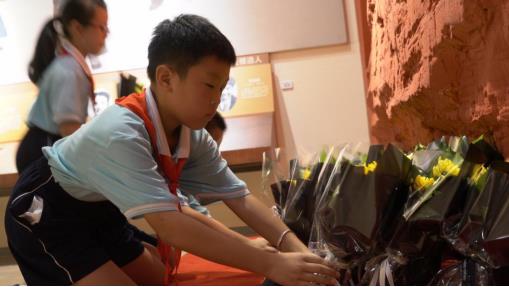 上午9时许,献花仪式在雄壮的国歌声中开始,少先队员代表及党史馆全体工作人员面向国旗肃立,齐声高唱中华人民共和国国歌。