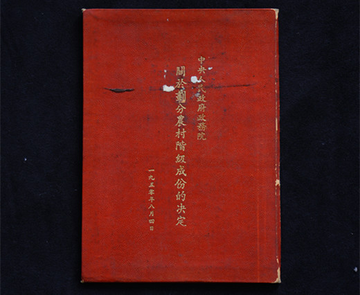 名称:任弼时翻阅过的《中央人民政务院关于划分农村阶级成分的决定》