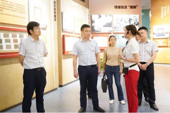 曹鑫一行首先参观了“敢教日月换新天——中国共产党湖南历史陈列”“不忘初心 牢记使命”党史文献展和“张文抗美援朝战地摄影展”。参观过程中,他们驻足观看,着重了解了党史馆的陈展方式及特色,重点聆听了从湖南省立第三师范学校走出的革命家的故事。
