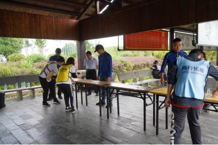 拓展活动现场,各队按照拓展训练规则,确定了队名、口号及队歌,并推选了队长,逐个进行团队融合和团队展示。之后,在基地教练指导下,大家先后参加了“开营破冰”“争锋夺秒”“急速60秒”“滴水不漏”“呼吸的力量”5个项目的拓展体验活动。各组队员相互鼓励、互帮互助、齐心协力、团结协作,展现了团结、凝聚、拼搏的团队精神风貌,展示了党史人积极进取、蓬勃向上的活力与朝气。