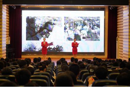 本次研学活动以“青年兴 则国兴”为主题。讲解员通过讲故事、快板、朗诵等多种方式为同学们讲述了《最后的嘱托》《忆秋收》《再见了,亲人》《消失的二十五年》《一件防护服的真情告白》等红色故事。同学们认真聆听,时而发出阵阵感叹,时而热泪盈眶,现场掌声雷动。