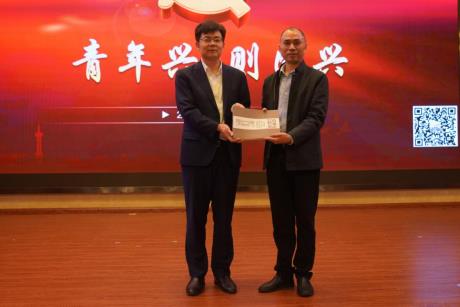 活动最后,讲解员们站在学生中间,用浸入式的诵读方式带领全体同学朗诵《少年中国说》。“今日之责任,不在他人,而全在我少年。少年智则国智,少年富则国富;少年强则国强,……壮哉我中国少年,与国无疆!”老师和同学们的合诵将活动推向高潮。合诵结束后,宋健平回赠党史馆书籍《直观的校史》、校明信片、印有市一中logo的帆布袋和笔记本。