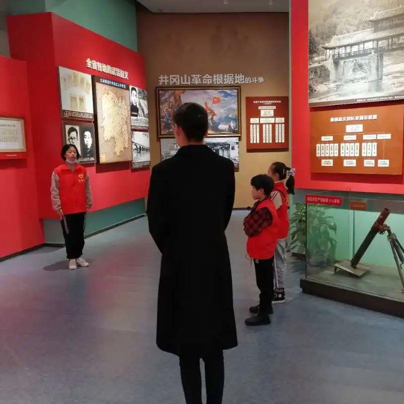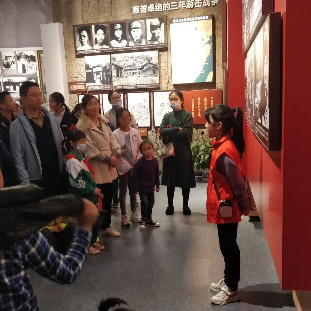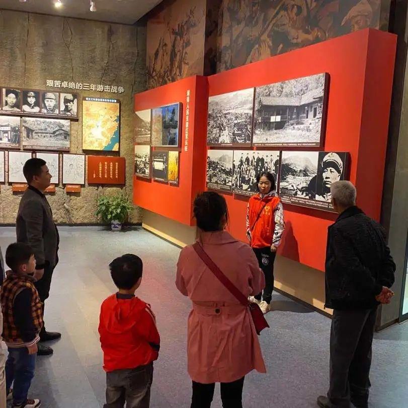 你看,志愿者陈彰沛、朱宇博等人在展厅为观众讲述红色故事,获得观众阵阵掌声,赢得观众阵阵喝彩。