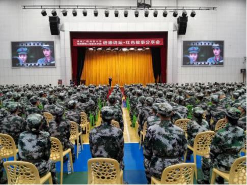 同学们身着整齐的军训服,端坐在会场,认真聆听红色故事宣讲团精心准备的《就义感召后来人》《半条被子的温暖》《你期盼的黎明到了》《扶贫路上的一座丰碑》等6个红色故事。在讲解员们饱含深情的讲述中,一个个鲜活的人物形象,一幕幕动人的曲折故事,犹如历史镜头,将同学们的思绪带回那段峥嵘岁月,革命先辈的精神在同学们心中引发了强烈共鸣。