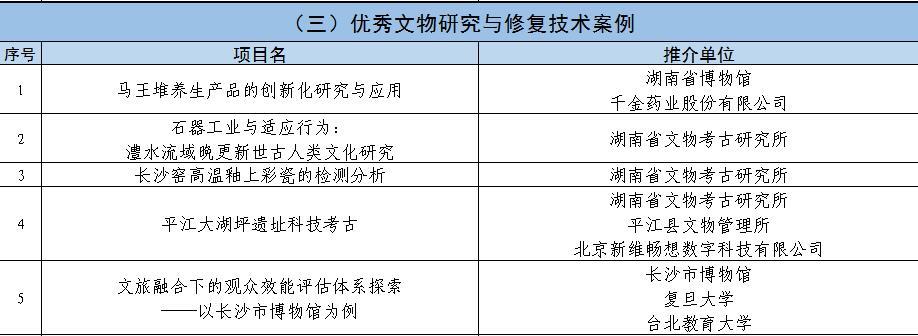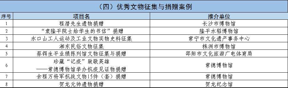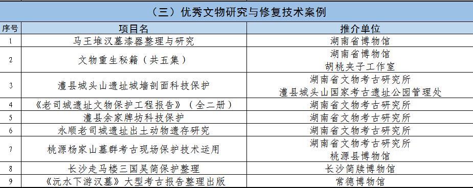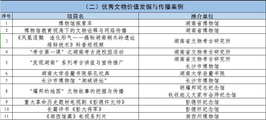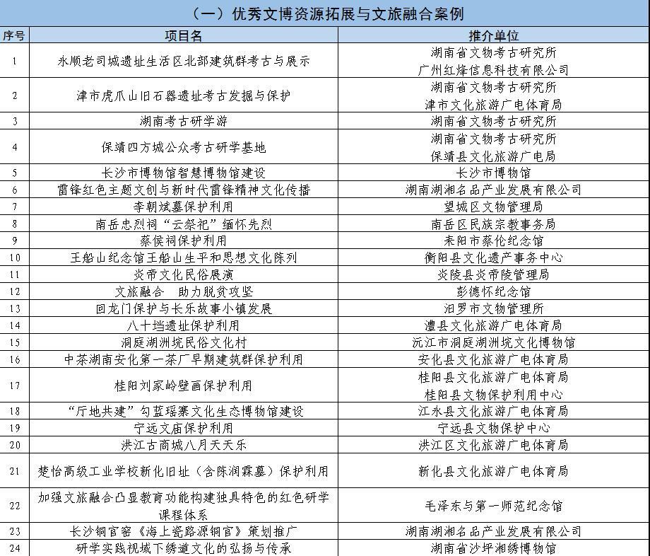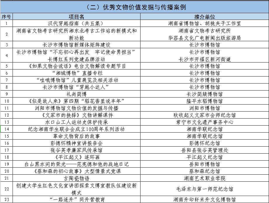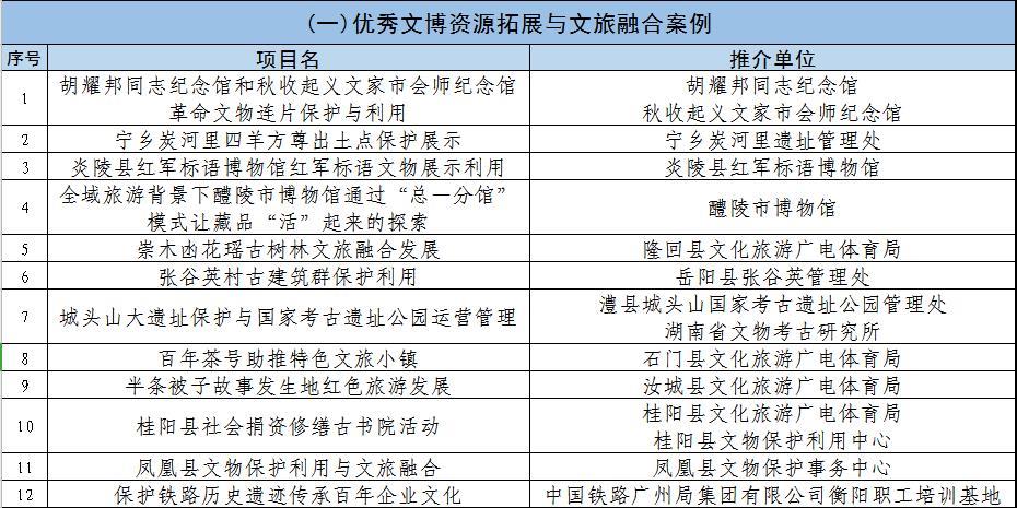 《湖南文物保护利用创新发展百佳案例》推介活动推荐名单(排名不分先后)