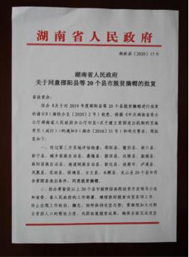 湖南省人民政府《关于同意邵阳县等20个县市脱贫摘帽的批复》