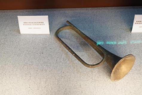 博览会“红旗如画”红色文物展区深度融入了湖南文化特色,通过47件(套)珍贵文物,集中展示了湖南革命文物背后的动人故事。湖南党史陈列馆二级文物浏阳小河乡赤卫队员罗厚吾参加秋收起义时用过的集结号入展。湖南党史陈列馆讲解员李霞、董青参与承担并顺利完成了“红旗如画”红色文物展区的讲解任务。