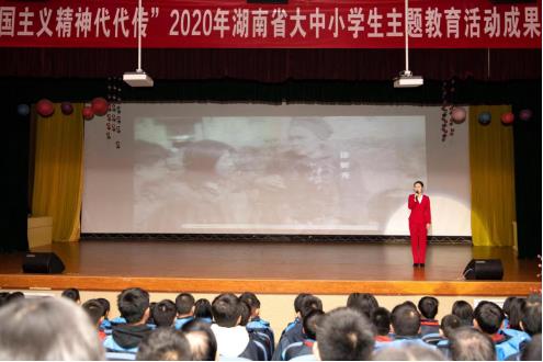 此次成果展现场,湖南党史陈列馆宣教部负责人谭丹受邀进行红色故事宣讲《半条被子的温暖》,讲述了红军长征途中,3位女红军将仅剩的一条被子分一半给徐解秀的故事。八十多年前,半条被子温暖了徐解秀一家,而在2020年的今天,也依旧温暖着观众的心,无数师生感动落泪。