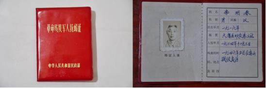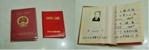 侯清芝的老干部离休荣誉证及革命残废军人抚恤证