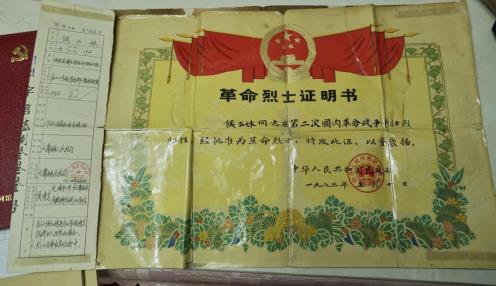 中华人民共和国民政部1983年颁发给侯幺妹的革命烈士证明书