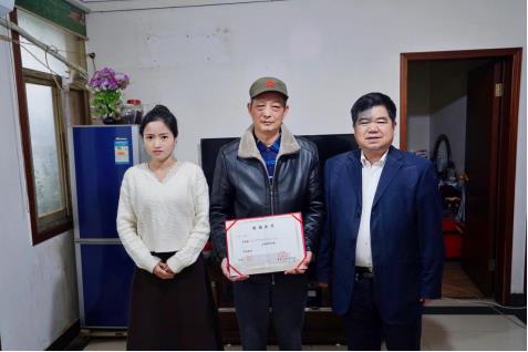 文物征集小组为老红军李明春之子李新华颁发捐赠证书
