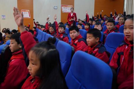在答题互动环节,主持人刚念完题目,孩子们就争先恐后地举手抢答,谁都不甘落后。实现了寓教于乐,在欢声笑语中学习党史知识的效果。