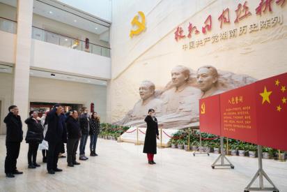 随后,谭少雄一行参观了“敢教日月换新天——中国共产党湖南历史陈列”“不忘初心、牢记使命”党史文献展和张文抗美援朝战地摄影展,并聆听了“湖南共产党人的初心和使命”主题微党课。一张张珍贵的照片、一个个生动的故事,让大家感受到了近百年以来的中国共产党所经历的苦难与辉煌。大家纷纷表示:在党史馆回顾党的光辉历史、缅怀革命先烈的丰功伟绩,受益匪浅,感触良多,我们要从党的光辉历程中汲取砥砺奋进的精神力量。