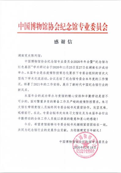 文章来源:湖南党史陈列馆 作者: 时间:2020-12-24 00:00:00中国博物馆协会纪念馆专业委员会