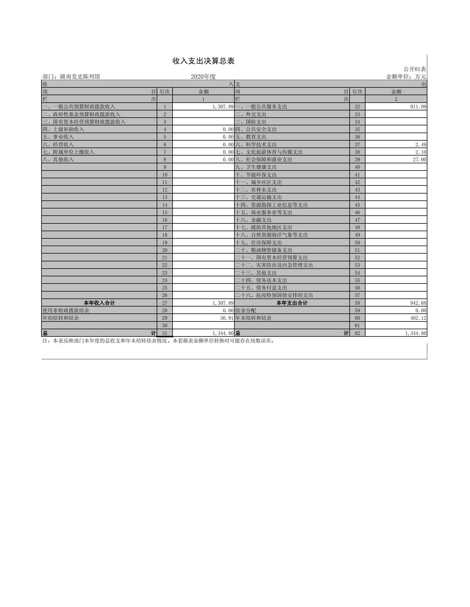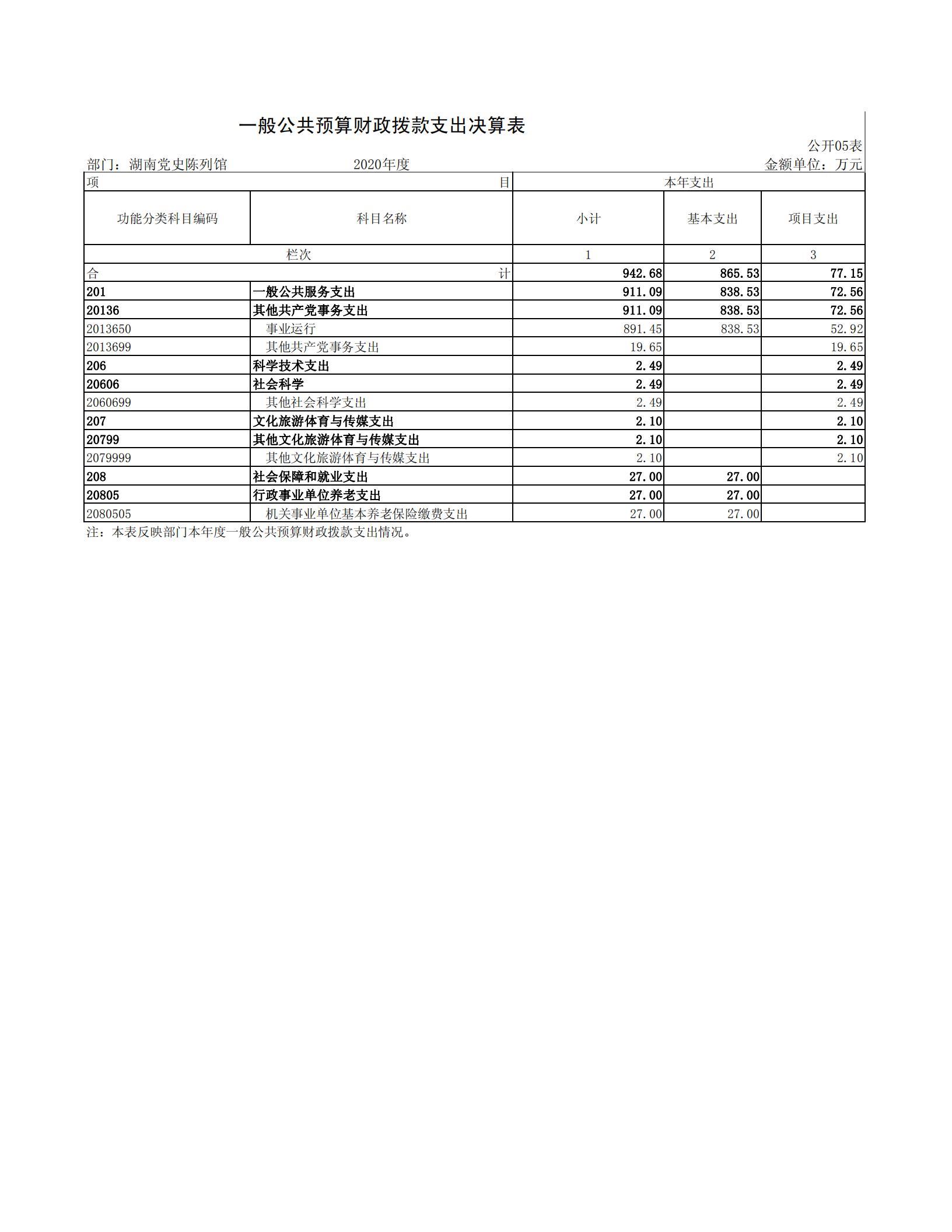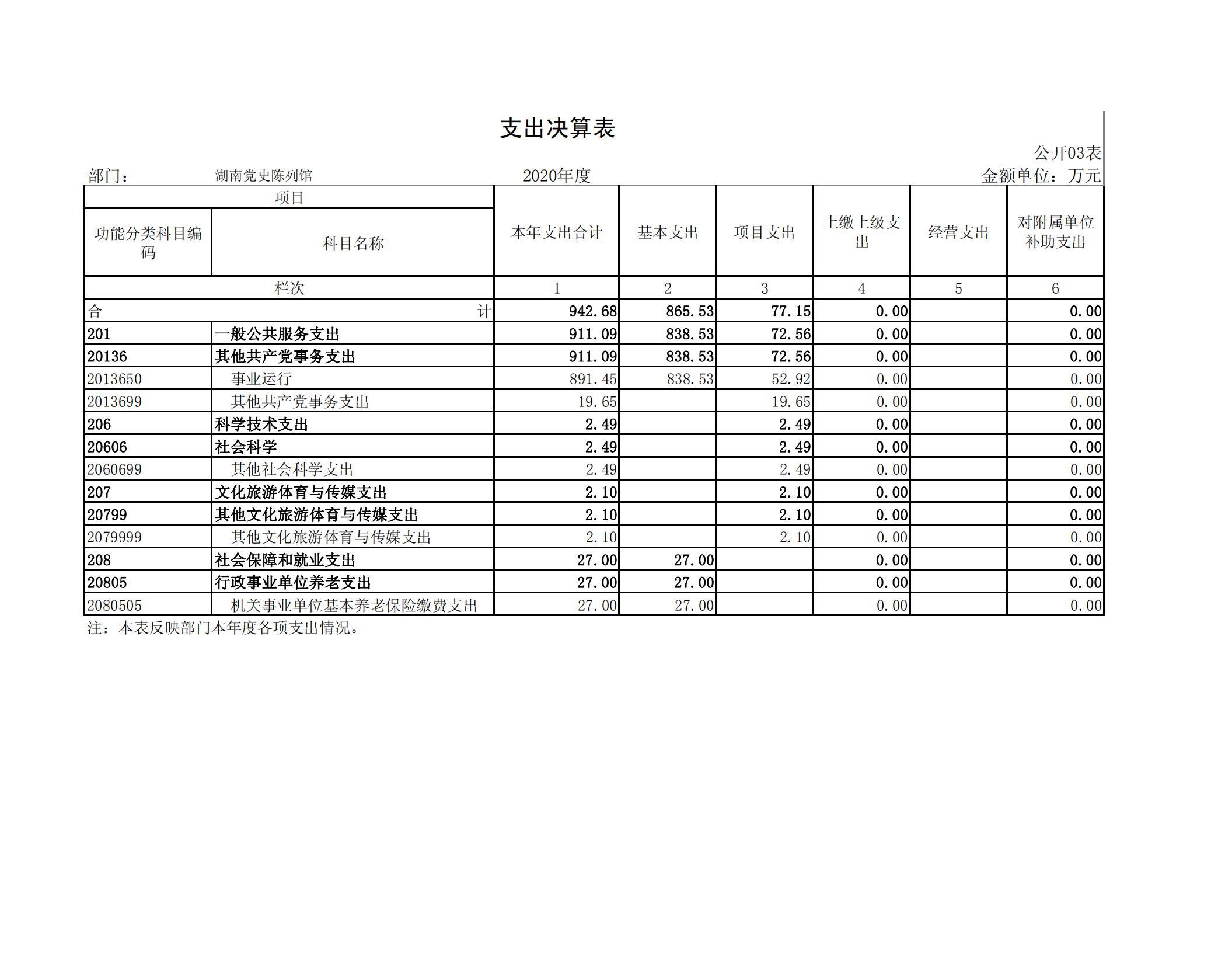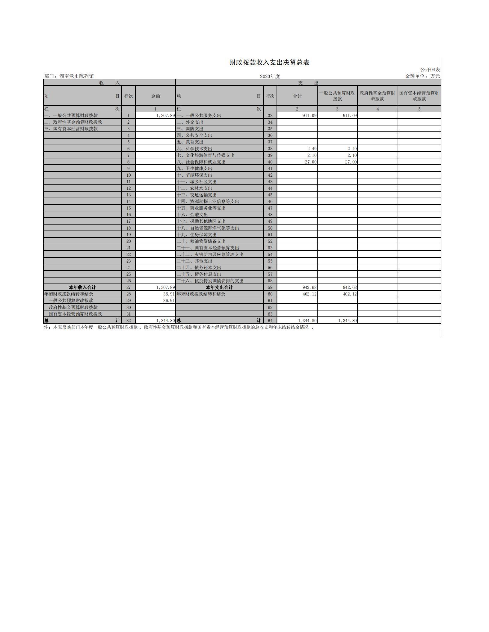 2020年度湖南党史陈列馆部门决算