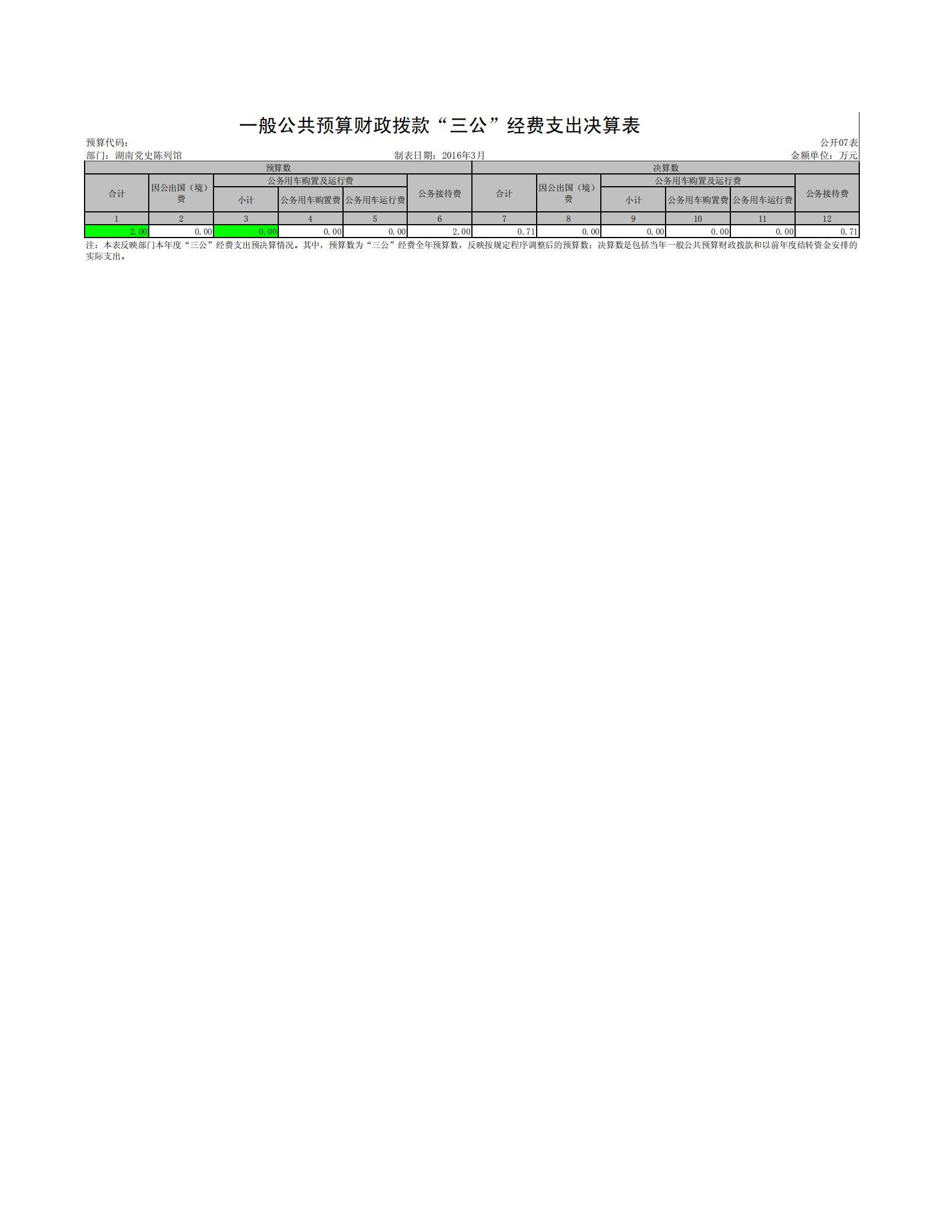 七、一般公共预算财政拨款“三公”经费支出决算表