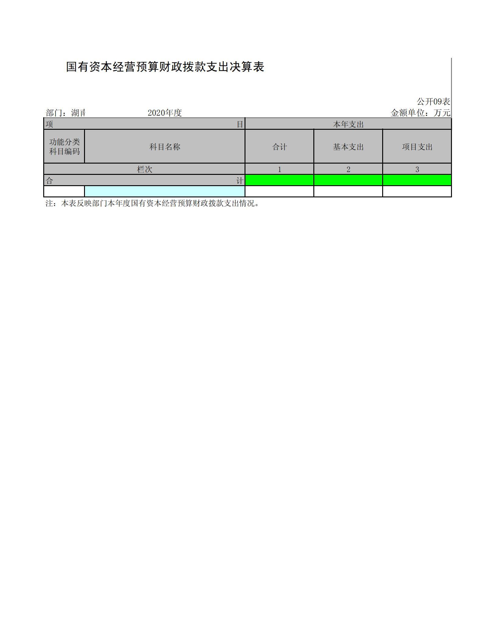 九、国有资本经营预算财政拨款支出决算表