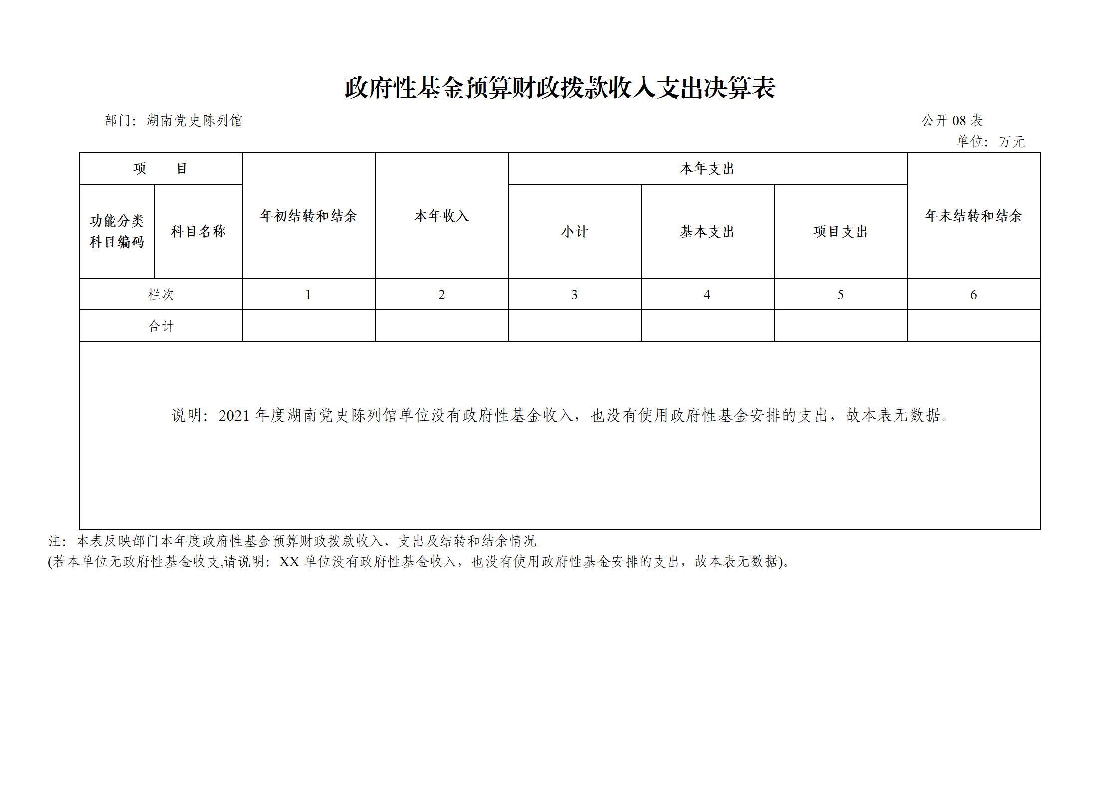 (二)决算单位构成。湖南党史陈列馆单位2021年部门决算汇总公开单位构成包括:湖南党史陈列馆单位本级。