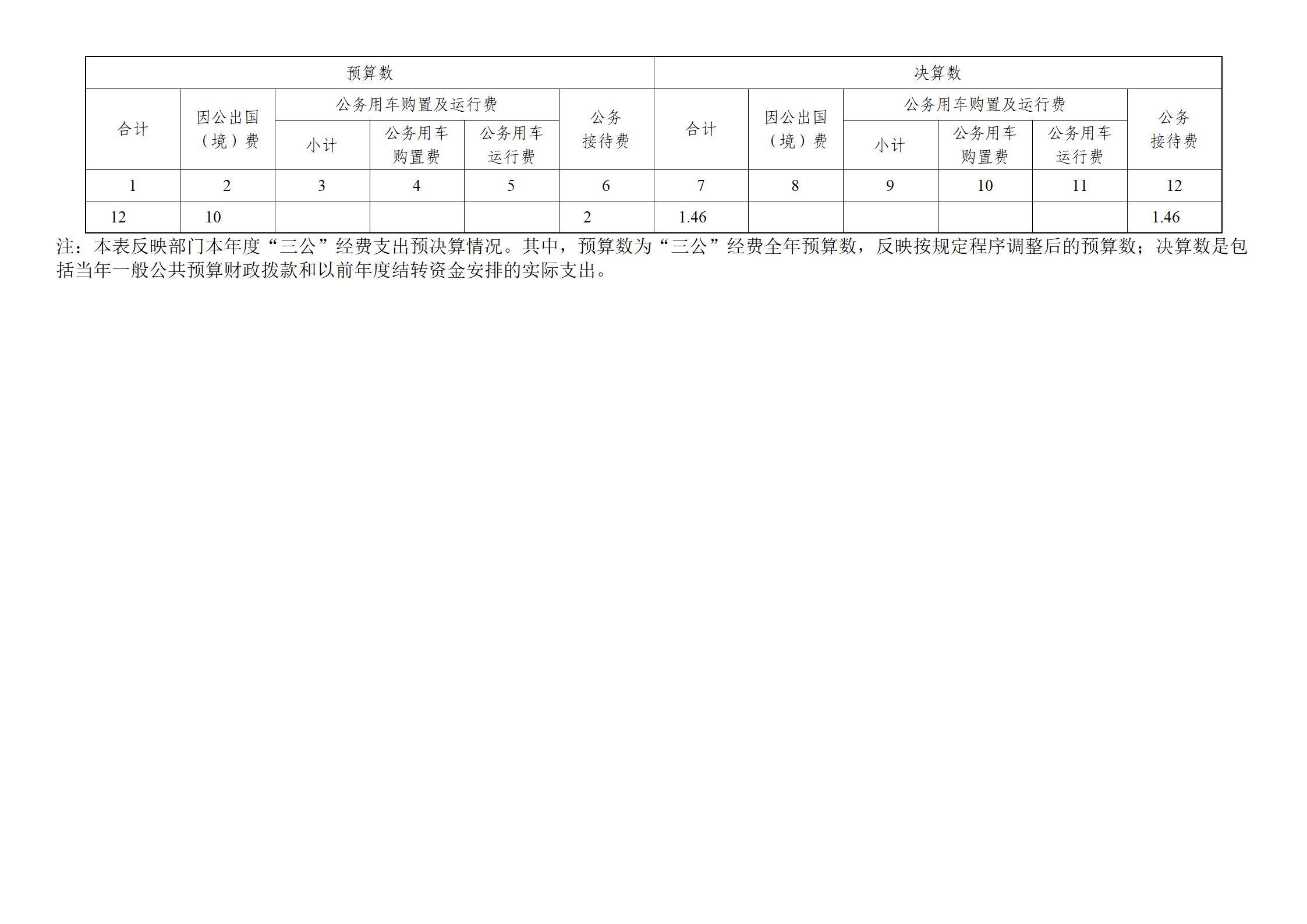 2021年度“三公”经费财政拨款支出预算为12万元,支出决算为1.46万元,完成预算的12.17%,其中: