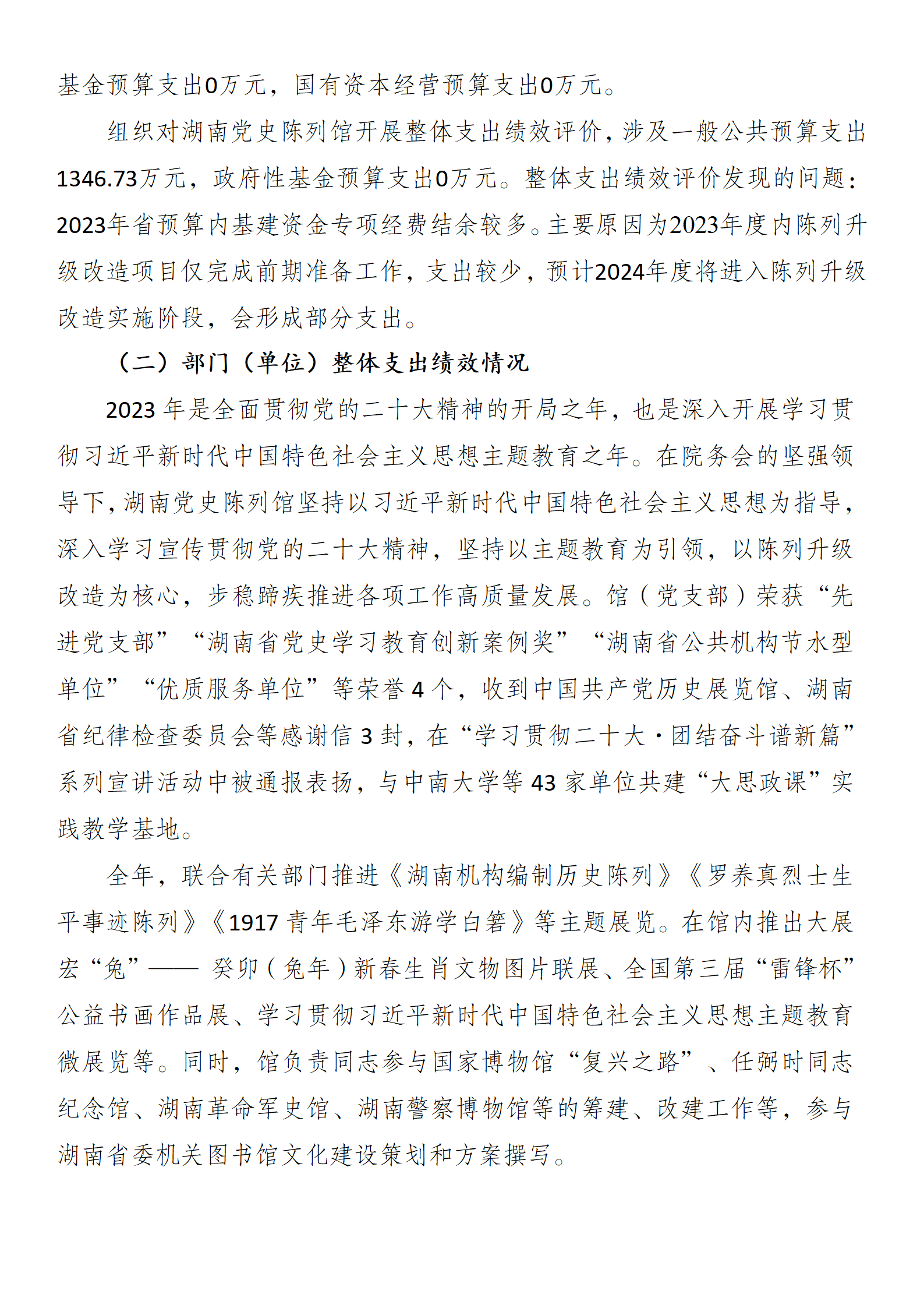 湖南党史陈列馆2023年部门整体支出绩效自评报告.pdf